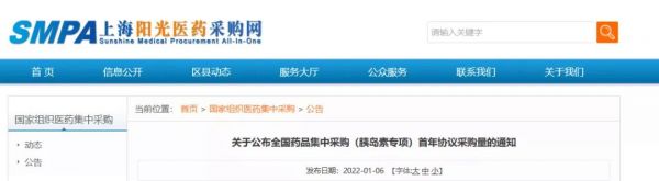 1月6日,上海阳光医药采购网发布《关于公布全国药品集中采购(胰岛素专项)首年协议采购量的通知》。通知规定,本次胰岛素专项集采中选结果将于2022年5月实施,具体执行日期以各地发布通知为准。