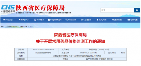 2月25日,陕西省医保局发布关于开展常用药品价格监测工作的通知,要求各市(区)在城市区域内选择3家有代表性的医保定点零售药店作为常用药品价格监测点,重点监测销量大,老百姓常用的药品,并公布了首次纳入监测的50个品种,包括27种西药与23种中成药。
