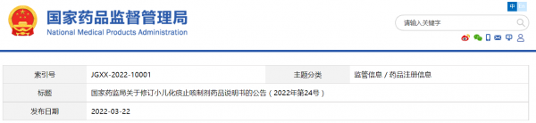 3月22日,国家药监局发布公告称,根据药品不良反应评估结果,为进一步保障公众用药安全,决定对小儿化痰止咳制剂说明书进行统一修订,修订内容涉及【不良反应】、【禁忌】和【注意事项】项。