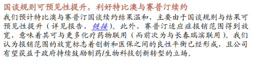 特比澳2022年销售预估为34亿,本轮国谈不降价叠加疫后需求持续恢复、新适应症持续获批、替代低端副作用大的白介素、全市场继续渗透等因素,