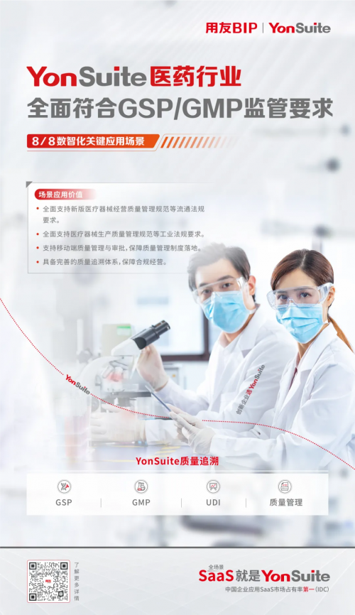 YonSuite构建药品与医疗器械全场景应用,实现业财一体、产研一体;打通市场端到供应端全流程,有效落地质量合规管控、赋能数智化经营决策转型。
