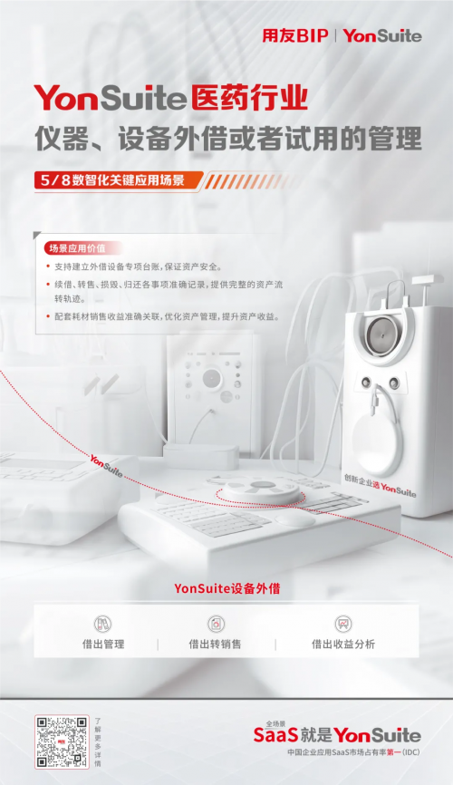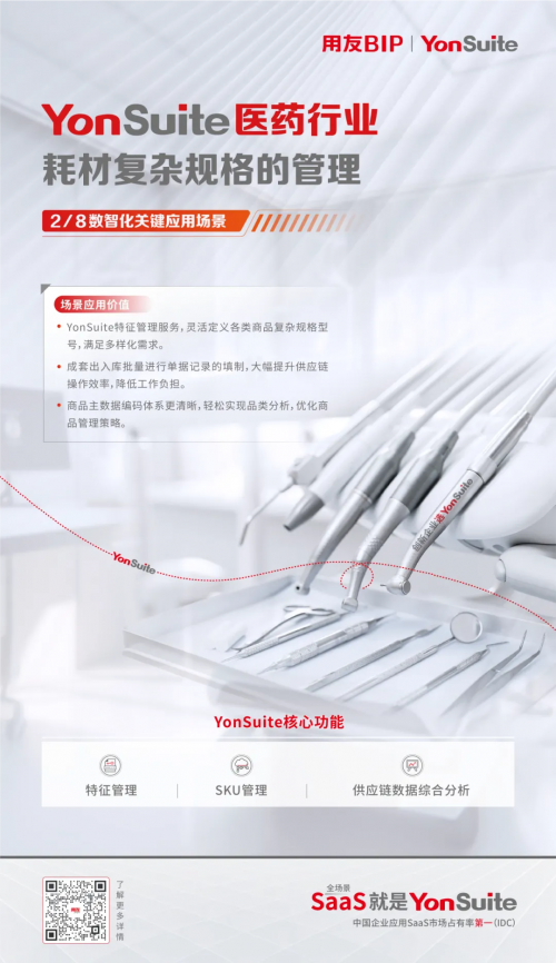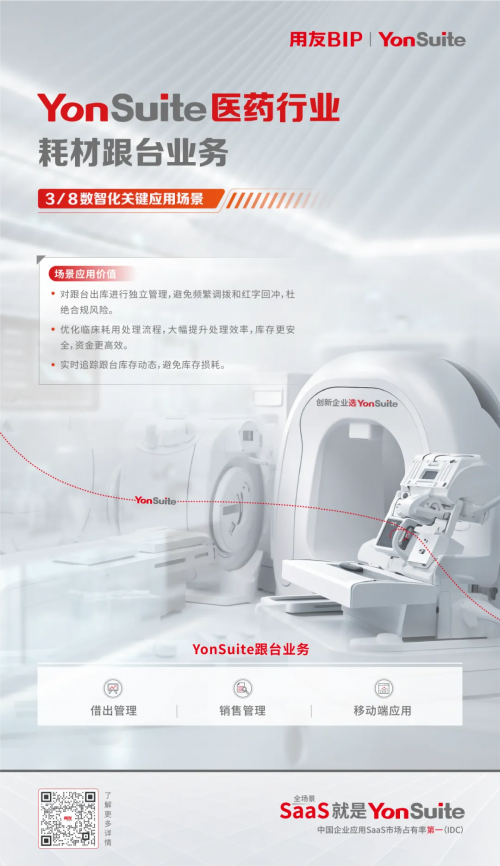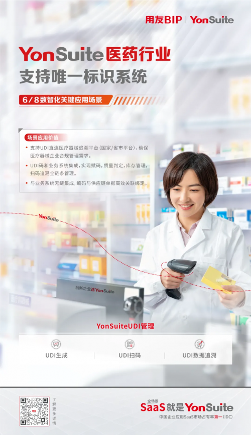 在此基础上,YonSuite针对医药行业企业精心推出了八大核心场景应用,凭借其卓越的功能和灵活的配置,深入覆盖医药行业的多个关键环节。无论是提升销售代表的工作效率、优化耗材复杂规格的管理、耗材跟台业务、加强第三方委托配送的协同,还是仪器、设备外借或试用的管理,YonSuite都能游刃有余地应对,它还支持唯一标识系统,为企业提供了一体化的业务管理服务,全面确保符合GSP/GMP监管要求,助力企业持续稳健发展。