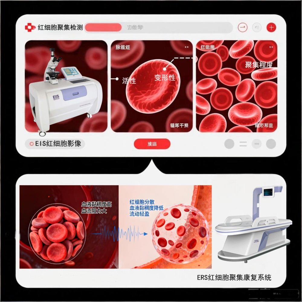 针对红细胞聚集、血液黏稠度偏高等问题,功能医学设备ERS红细胞聚集康复可提供科学的物理干预手段,从根源上改善红细胞的变形能力,提升血液流动性,解决红细胞聚集状况。