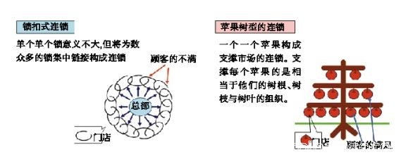 通常连锁店模式有两种:一种是锁扣型连锁,另一种是苹果树型连锁。