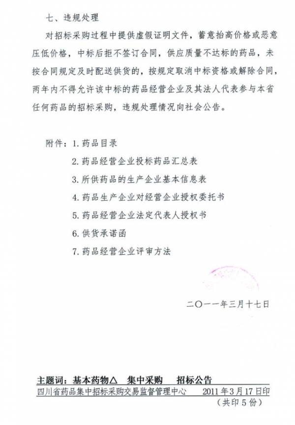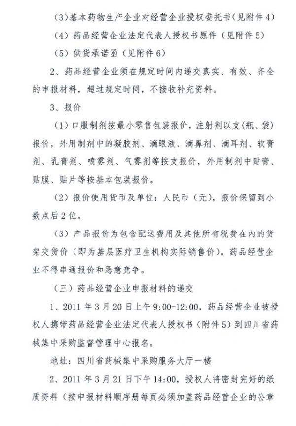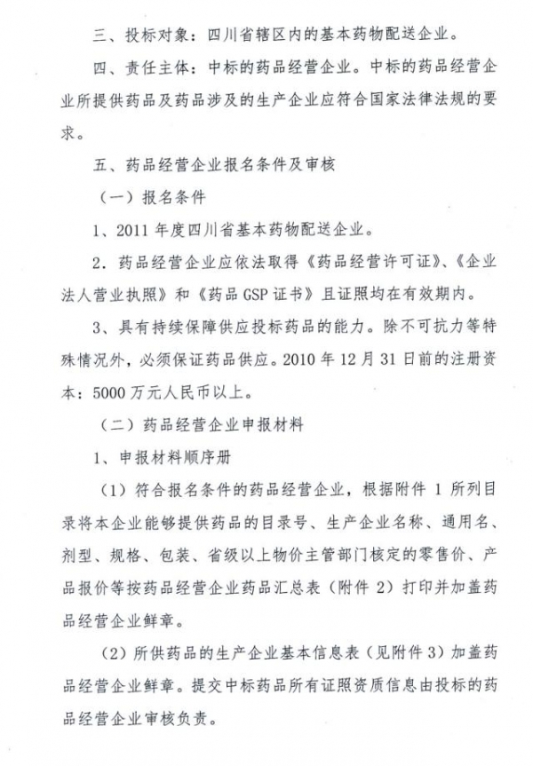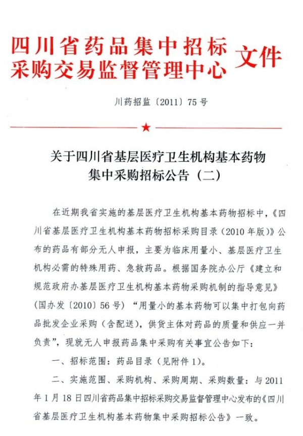 2011年四川省关于基层医疗卫生机构基本药物集中采购招标公告(二)