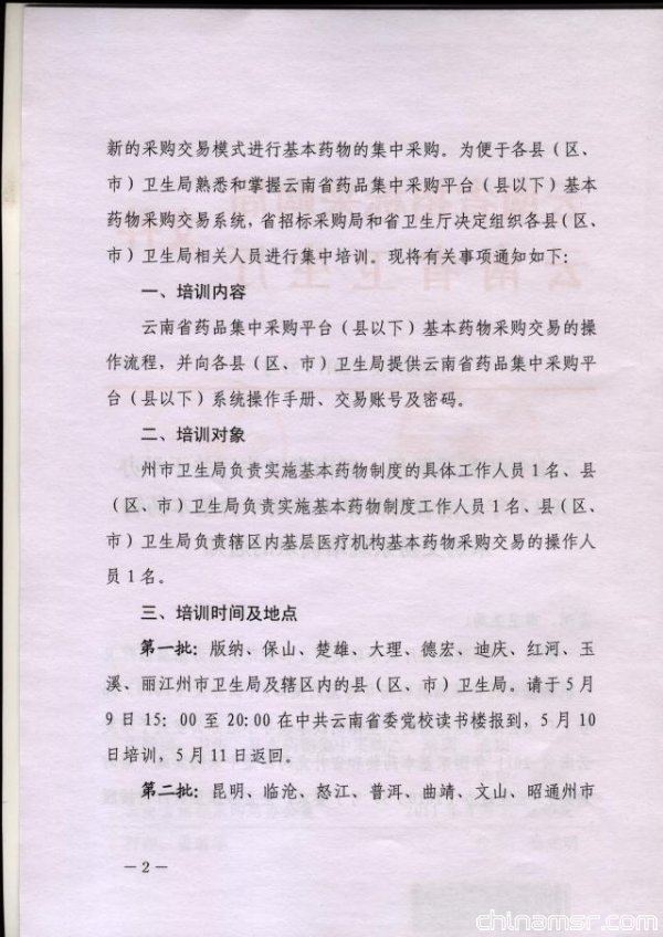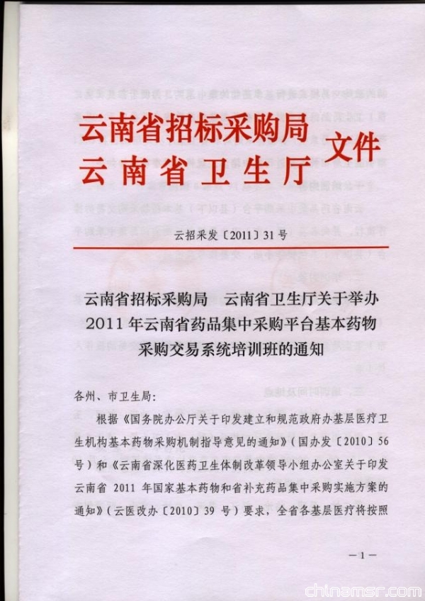 2011年云南省药品集中采购平台基本药物采购交易系统培训班的通知