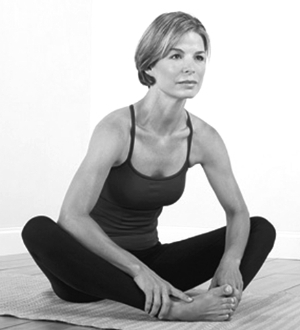 盘腿坐。这不是传统的盘腿坐,而是要两脚脚心相对,两膝分开,双手握住脚趾,让上身慢慢往前靠,试着让双脚尽可能地向身体靠近。这个运动能有效抻拉大腿内侧肌肉,这部分肌肉是性爱中活动最为频繁的部分,锻炼后性爱时会更加灵敏。(图上)