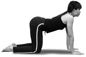 弓背趴。跪在床上,两膝打开与臀部同一宽度,小腿及脚背紧贴在地上,脚板朝天;向前趴下,让背部与地面平行;双手手掌按在地上,后背弓起再放下;重复5—8次。这个动作能有效联系腰腹部,还能提升女性阴部肌肉,让人变得更有曲线。(图中)