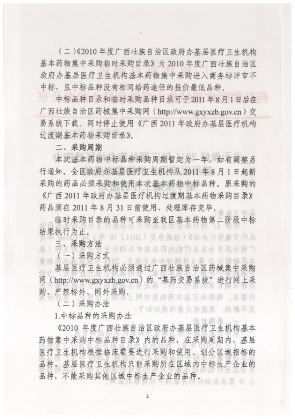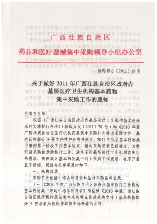 2011年广西壮族自治区关于做好政府办基层医疗卫生机构基本药物集中采购工作的通知