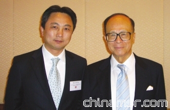 图为上海和黄药业有限公司总经理周俊杰(左)与李嘉诚先生合照。