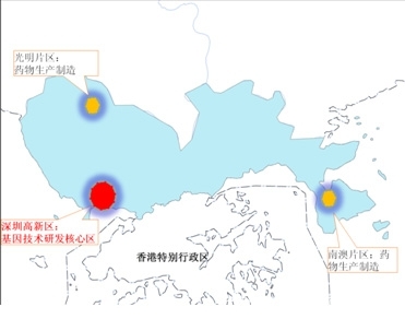 深圳国家生物医药产业基地包括核心区和扩展区。核心区在深圳高新区内,定位是创新研发、公共技术平台、服务体系建设;扩展区为光明片区和南澳片区,定位是中试基地、产业化基地。