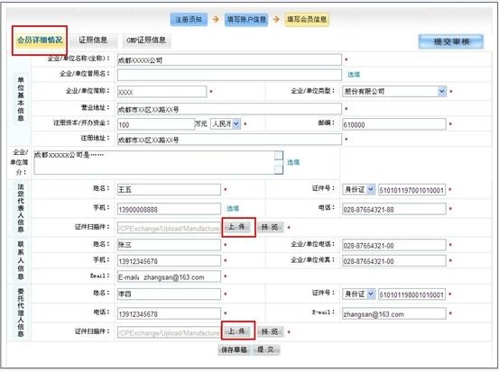 4、进入“填写会员信息”页面后,在“会员详细情况”页面,按要求录入有关信息并上传相关证件扫描件(如下图)。