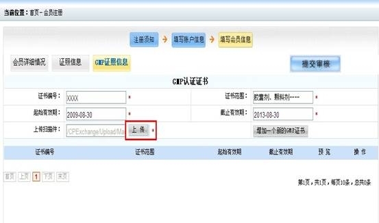 9、填写GMP认证证书的相关信息并上传证书扫描件(如下图)。