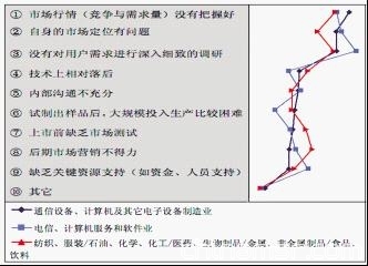 此外,关注医药企业产品创新可能失败的关键因素,也许能带来一些新的启示。清华大学技术创新研究中心的上述报告还显示了几个典型行业产品创新失败的关键因素(如图2所示)。总体来说,产品开发失败以市场因素为主,即没有把握好市场行情(竞争与需求量),市场定位有问题,没有对客户需求进行深入细致的调研。因技术原因造成产品失败相对少得多。针对药企而言,创新失败的首要因素是未把握市场行情,其次是没有对客户需求进行深入调研。同时值得重视的是,产品上市前的测试和后期市场营销,也是需要大力改进的。