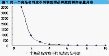 本研究结果提示,同一商品名对应多个剂型规格制剂的现象在一定程度上比较常见。虽然近半数的商品名记录是一个商品名对应一个通用名称,但是一个商品名对应3个以上不同剂型与制剂规格的比例已超过1/4。虽然一名多药现象分布符合幂律,比例不大,但是比例小的部分在临床造成的影响却往往比较大。而且研究结果也提示,越是临床应用广泛的品种,生产企业越多的品种,一名多药现象越普遍,对临床用药安全隐患的影响面也越大。