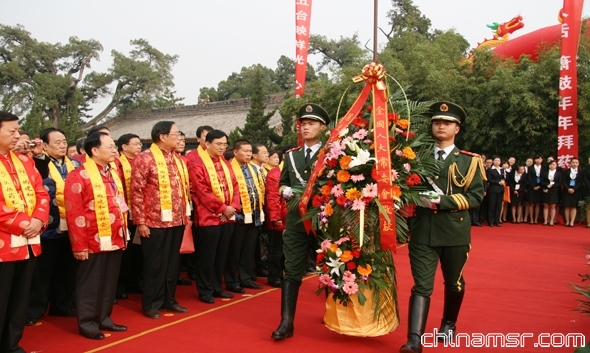 十月的药王山,秋风送爽柏枝香,万众虔心拜药王,在庄重的鼓乐声中,由全国人大农业与农村委员会委员、国防大学原副政委李殿仁;国家卫生部副部长、国家中医药管理局局长王国强;中国贸促会副会长张伟;陕西省副省长郑小明;铜川市委书记、铜川市人大常委会主任冯新柱;国医大师、陕西中医学院教授张学文;铜川市耀州区委书记李志强等代表向药王敬献花篮。