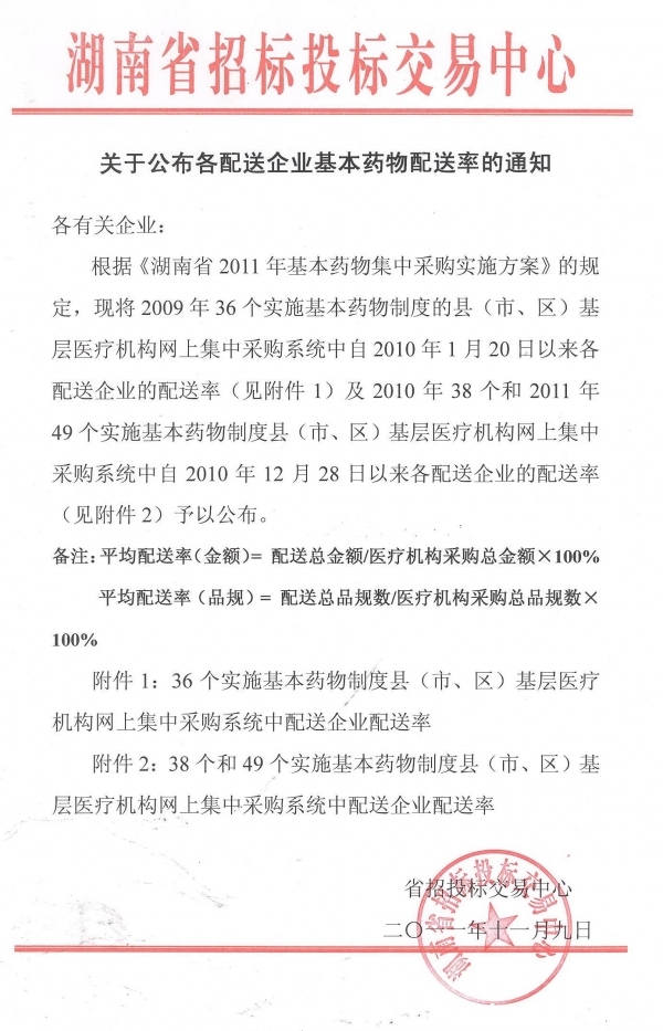 附件一:36个实施基本药物制度县(市、区)基层医疗机构网上集中采购系统中配送企业配送率.xls 附件二: 38个和49个实施基本药物制度县(市、区)基层医疗机构网上集中采购系统中配送企业配送率.xls