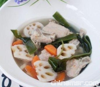 作用:莲藕的营养价值很高,具有消食止泻、开胃清热、滋补等功效;海带含有丰富的钙、碘等营养物质;排骨含有大量的蛋白质、脂肪及钙、磷等。适合一家大小食用。