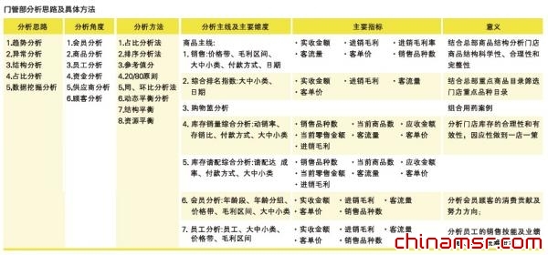 四、 资金使用。资金使用的管理包括两方面,一是商品的库存控制,二是促销费用、日常支出、人员编制费用等。而合理的库存控制要做到既不断货又不占压过多流动资金,必须通过数据分析来完成。门管部还要对门店的人效指标进行考量,提升投入产出比。