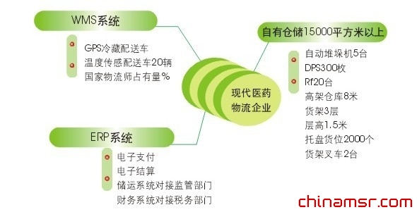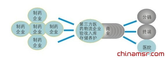 我们可以通过对比来展示第三方医药物流的独特优势,传统医药物流供应链的弊端:传统医药物流流通环节多,配送时间长,仓储和配送安全隐患增多;药品在储运和分拣中差错多,技术系统监控难,经营成本高;供应链运行效率低,物流手段落后,药品的质量管理、仓储和配送技术创新难以实现。另外,全国的13000多家医药流通企业,家家都要达到GSP标准,GSP一次性投入总额将超过100亿元,每年还要投入维护费用100亿元以上。问题是:低水平重复投入,使我国的医药物流行业深陷泥潭。