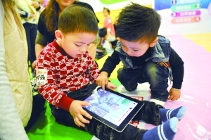 一个工作日的中午,记者来到位于北京三里屯的苹果体验店,几个孩子在父母的带领下正摆弄着iPad样品。一个3岁左右的男孩很喜欢一个小熊的游戏,他虽然不懂游戏规则,但看到色彩鲜艳的画面、活泼可爱的卡通形象,就忍不住去拍屏幕。一个小时很快过去了,小家伙乐此不疲。他的母亲告诉记者,他们从山西来玩,孩子在幼儿园的小伙伴们很多都有iPad,他也闹着要一个。