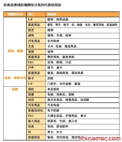 情趣性的可选性 欲实现差异化的商品战略,要展开色彩、质地、制造、品牌等因人喜好而异的丰富其可选性的商品战略,要尽可能增加设计及风格的可选性,在此基础之上,尽量丰富商品的品规。