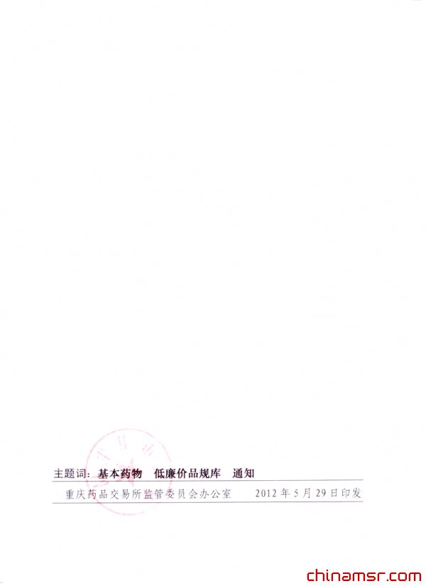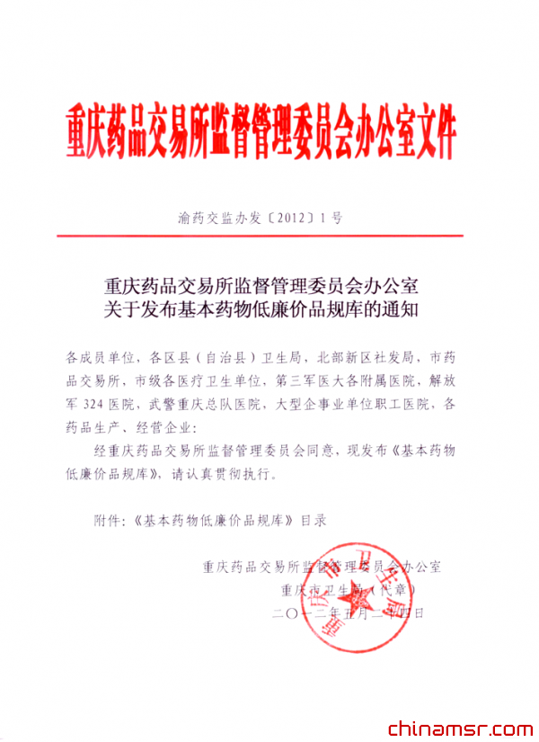 2012年重庆药品交易所监督管理委员会办公室关于发布基本药物低廉价品规库的通知