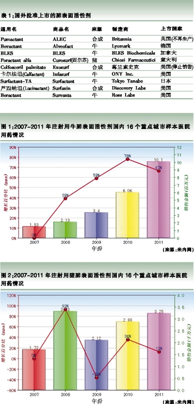 目前国内市场上的肺表面活性剂仅2家,1家为国产的注射用牛肺表面活性剂,另一家为进口产品猪肺表面活性物质。