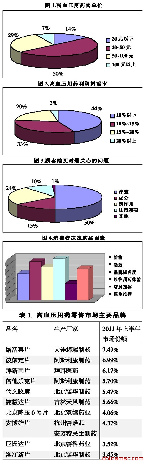 因此,高血压用药占整个药店的利润贡献率也不高。在调查中(见图2),44%的药店显示高血压用药利润贡献率低于10%,33%的药店高血压药品利润率在10%~15%,另有20%的药店表示利润贡献率在15%~20%,利润贡献率在20%以上者为3%。