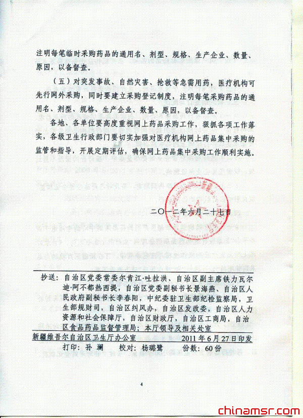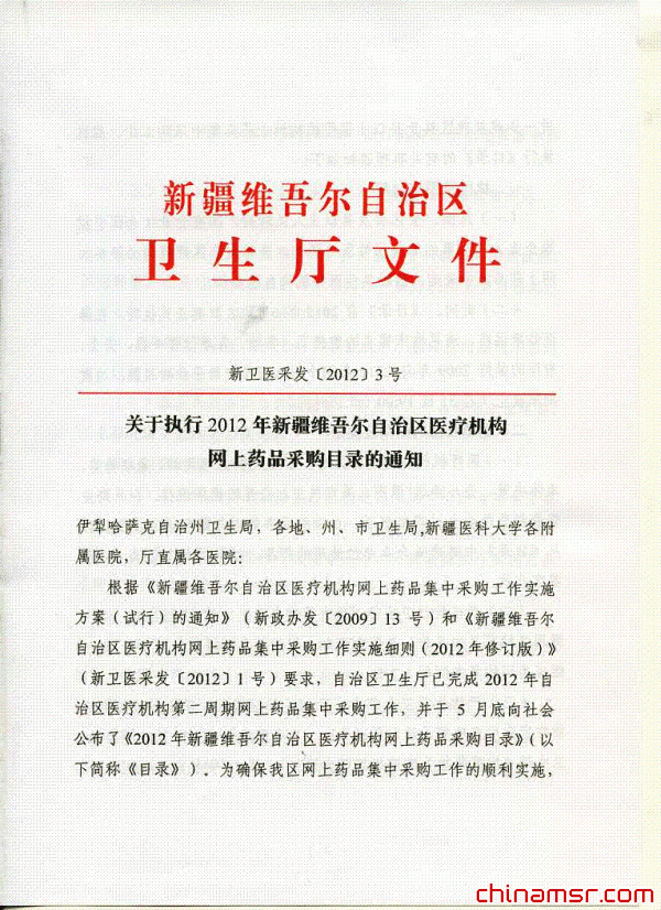 2012年新疆维吾尔族自治区关于执行2012年新疆维吾尔自治区医疗机构网上药品采购目录的通知