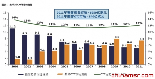 2011年是非处方药(以下简称OTC)市场划时代的一年,全球增长率已经超越了处方药。尽管目前在中国市场其增速仍然低于处方药,但态势可喜。