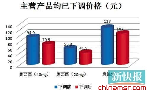 事实上,这种风险已并不是“狼来了”。今年3月27日,国家发改委决定从今年5月1日起将消化类药品最高零售价下调。此次最高零售价下调涉及奥赛康的4个产品,其中奥西康(40mg)、奥西康(20mg)、奥维加最高零售价分别从调整前的94.9元、55.8元、127元到调整后的70.5元、41.5元、107元,下降幅度分别达25.7%、25.6%、15.75%,就平均售价而言,下调幅度也均超过5%,而且未来因政策调整或市场竞争加剧等原因,其产品售价仍有下调的风险。