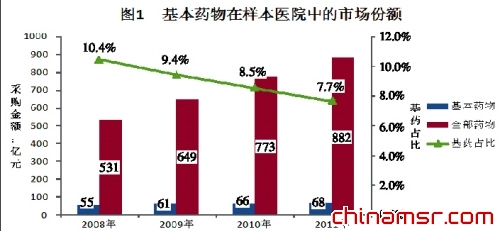 基层医疗机构是基药的主要市场,基本药物规模约莫估计超过千亿元,是基药营销关注的首要目标市场。但基本药物并不都在基层,各级医院也是使用基本药物的重要终端,基本药物的市场情况值得重视。