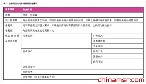 据德威治副总经理左志颖介绍,在连锁药店主动引入新品时,主要从以下几方面细致考量(见下页表1)。