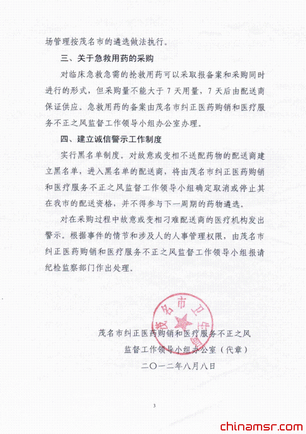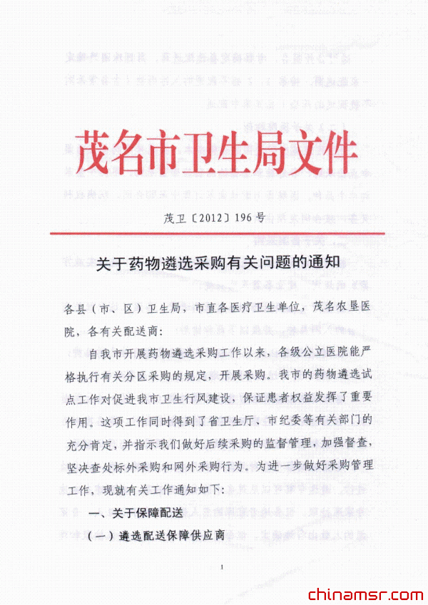 2012年广东省茂名市关于药物遴选采购有关问题的通知
