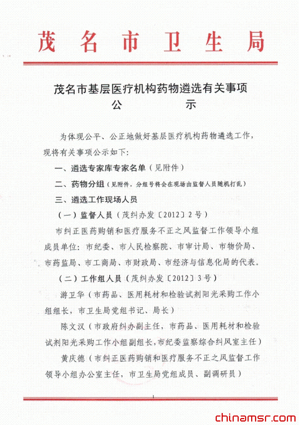 2012年广东省茂名市基础医疗机构药物遴选有关事项公示