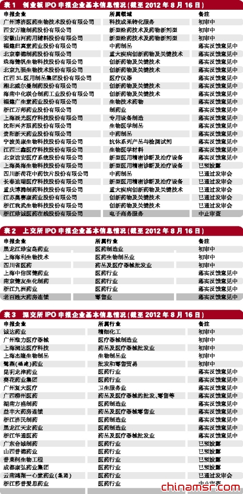 此外,无论是在创业板、中小板,还是在主板登陆的医药上市企业,都共同面临宏观经济和行业政策的冲击。在预披露的招股说明书上,政策风险一项往往会有“《关于加快医药行业结构调整的指导意见》明确加快调整医药行业产品结构、技术结构、组织结构、区域结构和出口结构的具体内容”、“《药品生产质量管理规范(2010年修订)》大幅提高了药品生产企业质量管理、人员素质以及药品安全保障等方面的要求”、“国家推行药品降价措施的力度不断加大”之类的提醒。
