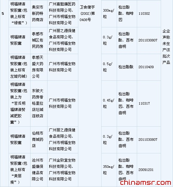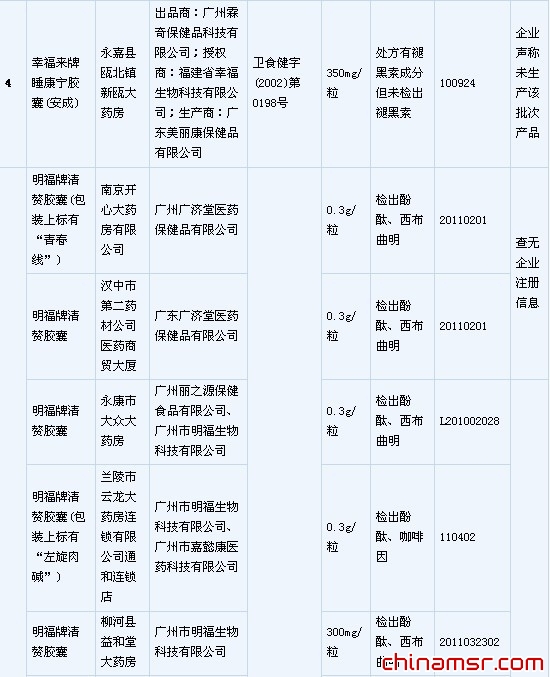 据国家食品药品监督管理局网站消息,近日,食品药品监督管理部门通过保健食品专项监督检查和抽验,在“明福牌清赘胶囊”等产品中检出化学药物成分,经核实上述产品为假冒保健食品。