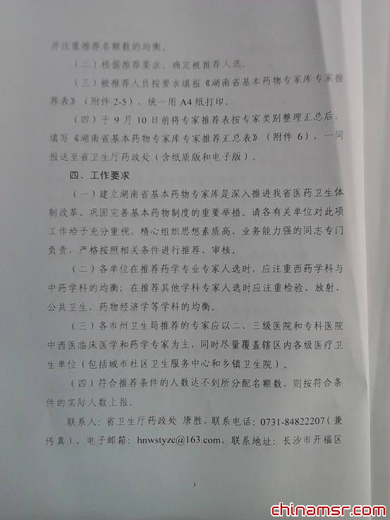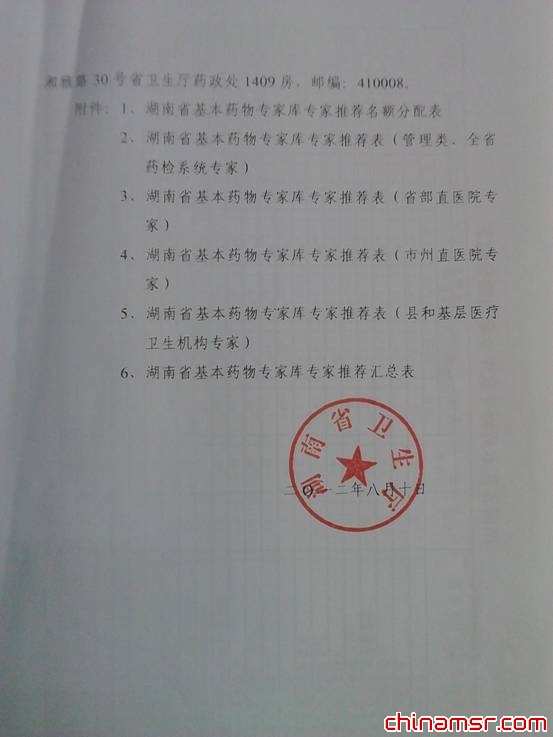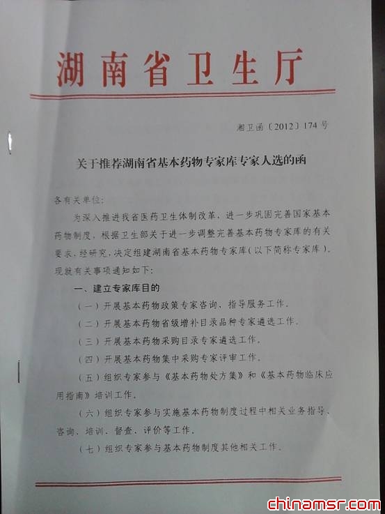 2012年湖南省关于推荐基本药物专家库专家人选的函