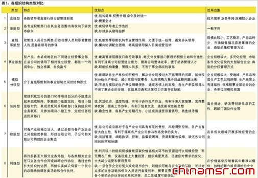 不同的组织形式具有不同的特点和适用范围,具体差异如下页表1所示。