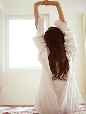 1、跟着太阳同起落:尽可能地在太阳升起的时候起床,或在起床时点一盏很亮的灯。明亮的光线会让人体生物钟调整到最佳状态。每天在晨光中晒上一小时,你会觉得精神奕奕,而晚上也更容易睡着。