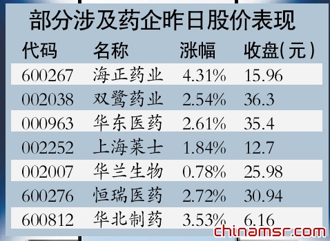 据了解,此次降价涉及的上市公司包括恒瑞医药、海正药业、双鹭药业、华东医药、华兰生物、华北制药等,其中不少股票昨日均有上涨,对此分析师认为,此番降价对相关股价后续影响不大,很多股票前期已“消化”调整过一轮了。
