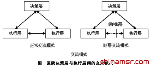 规章制度若执行到位的话,执行层工作成效的好坏,应该是由相关考核结果说话,而不是领导发话,认为谁好谁就好。这样,决策层、执行层之间的三角交流模式就有了存在的基础,执行层的干部会主动地相互沟通,加速各项工作的展开,并且相信自己的工作成果会通过客观公正的渠道反映到决策层,自己的能力及付出不会被埋没。但如果规章制度执行不到位,会使得执行层干部对自己的付出和努力能否得到客观公正的评价与回报产生怀疑,结果是他们会争相向医院的决策层汇报工作,直接获得下一步工作安排。