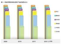 MDC研究数据显示,2011年中成药占药店销售的比例为31.8%,与2010年相比增长了1个百分点,而2011年化学药、器械类及保健品的销售占比均停滞不前或出现下降。根据MDC预测,2012年零售终端中成药的规模增幅为12.0% ,高于2012年整体零售市场的增幅11.6%。