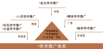体系化需要企业建立5大推广体系——会议学术推广体系、人员学术推广体系、临床学术推广体系、媒体学术推广体系、论坛及公益学术推广体系,通过这5大体系之间的有效整合和积极互动,可以使学术推广立体化、多元化,层次更加丰富。