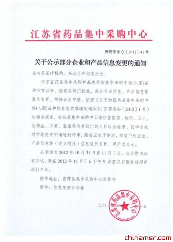 2012年江苏省关于公示部分企业和产品信息变更的通知