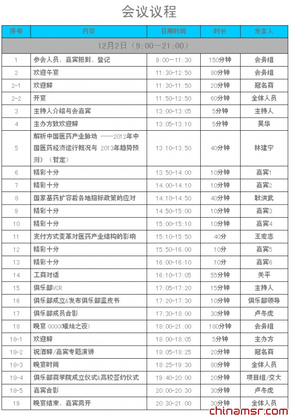 会议主题:医改纵深推进发展中的工商对话暨医药经理人俱乐部成立大会