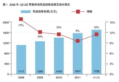 也正因为此,零售终端近年来药品销售仍然延续增长势头,2008年~2011年4年年均增速为13%。