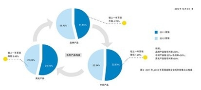 值得注意的是,近年随着市场环境的转变,零售药店在品类结构上也不断地进行调整与优化。当前,药店品牌药依然占主流,连锁与品牌工业合作的意愿非常强烈,品牌工业对零售行业的重视程度也在不断加强。根据MDC发布的《2012年度中国药品零售企业竞争力研究》报告,2012年百强连锁品牌药占比上升4.8%。