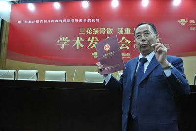 药品发明人柳海峰意外出现在“三花接骨散”上市发布会现场